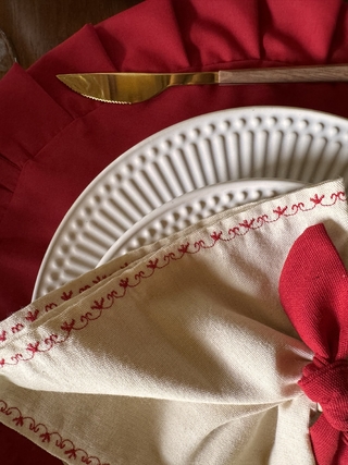 Escolha a Cor: Creme com bordado vermelho